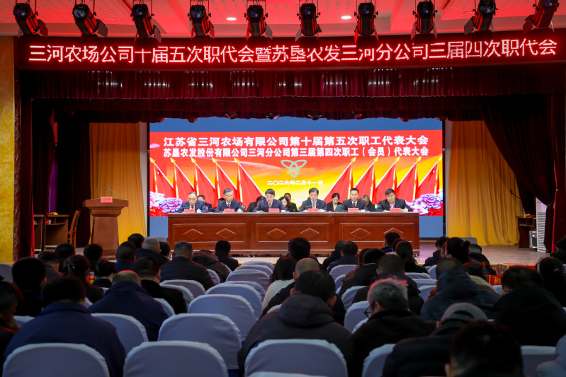 2月11日上午,江苏省三河农场有限公司第十届第五次、苏垦农发三河分公司第三届第四次职工代表大会隆重召开。会议全面回顾了农场公司、农发三河分公司砥砺奋进的2025年及整个“十四五”历程,深入分析了当前面临的新形势、新机遇与新挑战,科学谋划了“十五五”时期改革发展的宏伟蓝图,全面部署了2026年的重点工作任务。农场公司党委书记、董事长、苏垦农发三河分公司总经理刘春利出席大会并讲话。农场公司党委副书记、总经理王林作总经理工作报告。农场公司党委委员、副总经理杨海燕主持大会。农场公司党委委员、苏垦农发三河分公司副总经理路道彬代表分公司作总经理工作报告,农场公司党委委员、纪委书记时奎敬宣读相关决议(草案)和表彰决定。