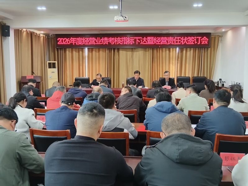 会议首先由组织部门系统解读《2026 年度全员经营目标责任状》,明确考核指标、岗位责任、奖惩细则等核心内容,划定执行标准、明晰行动遵循。随后,各产业板块负责人依次递交经营责任状,并作表态发言,均表示将对标契约要求,扛牢经营主体责任,把目标任务分解到岗、落实到人,以过硬执行力确保年度目标圆满完成。