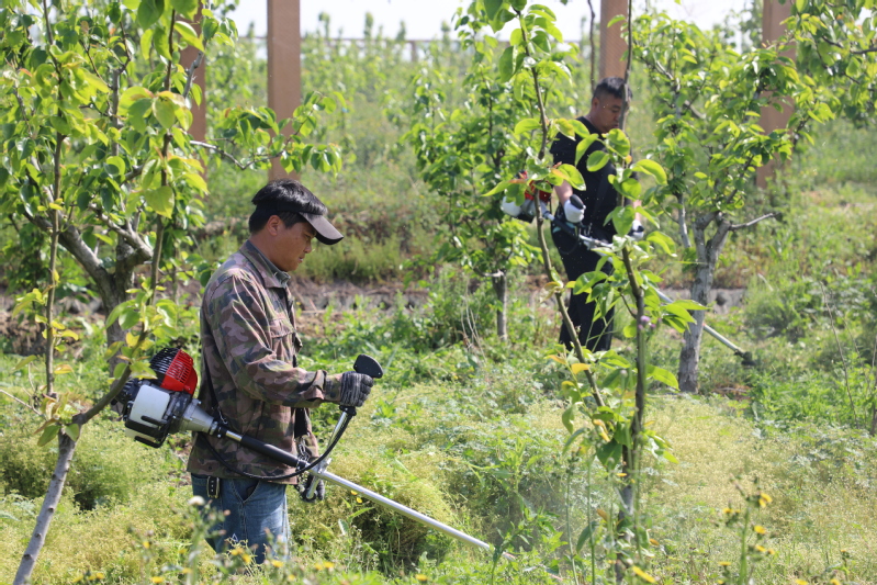 “草打低了,通风透气好了,梨树病虫害自然就少了。现在是梨果膨大和品质形成的关键期,除了除草,紧接着就是疏果、套袋、水肥管控,一环扣一环,哪个环节都马虎不得。”梨园工作人员张伟一边给除草机加油,一边介绍道。